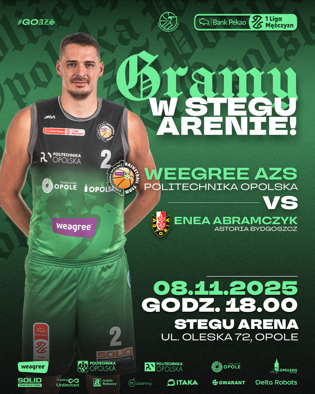 Starcie Weegree AZS Politechniki Opolskiej z Eneą Astorią Bydgoszcz zaplanowano na sobote, 8. listopada – start o godz. 18:00.