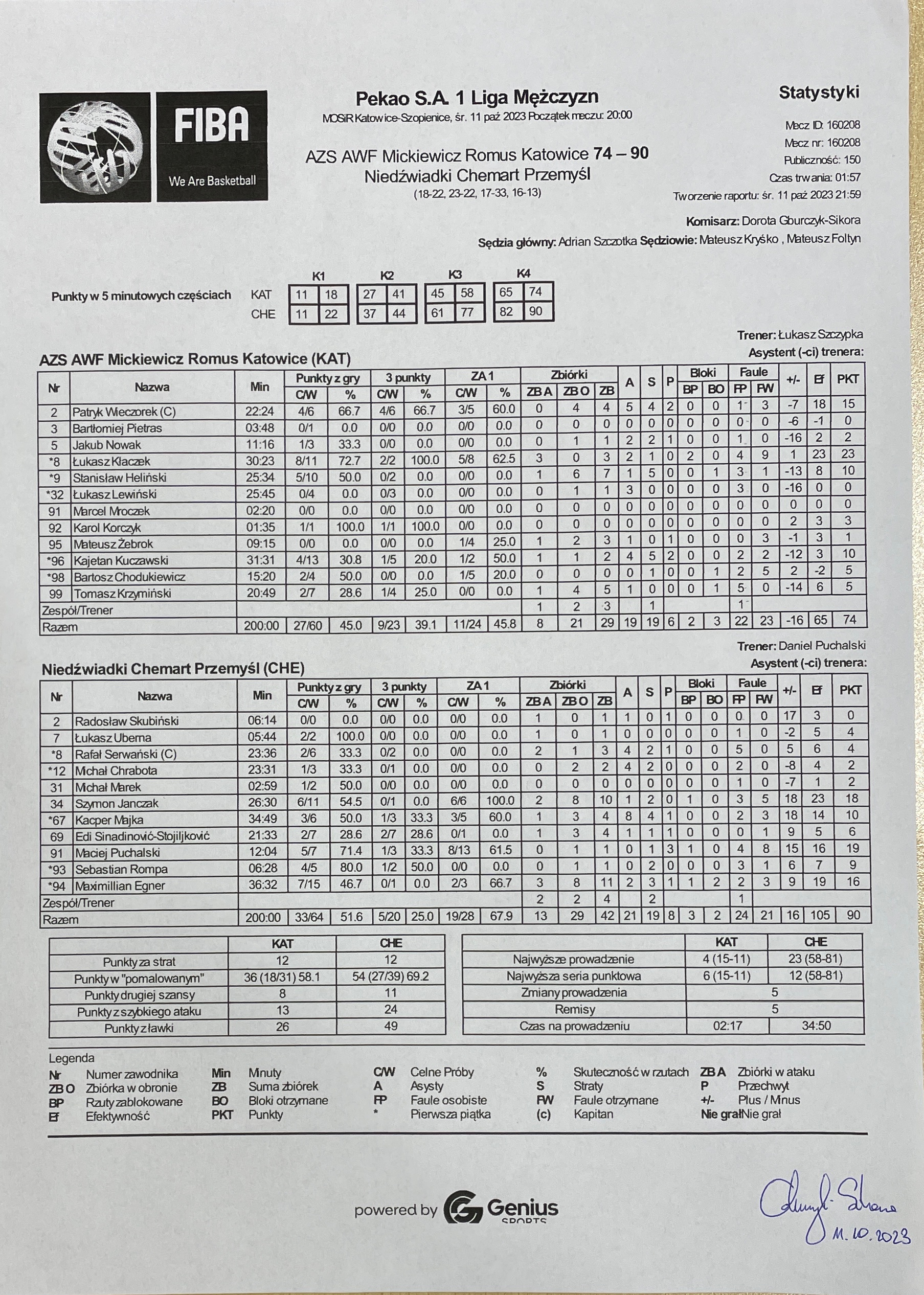 Etap I - 4 kolejka | 11.10.2023 20:00