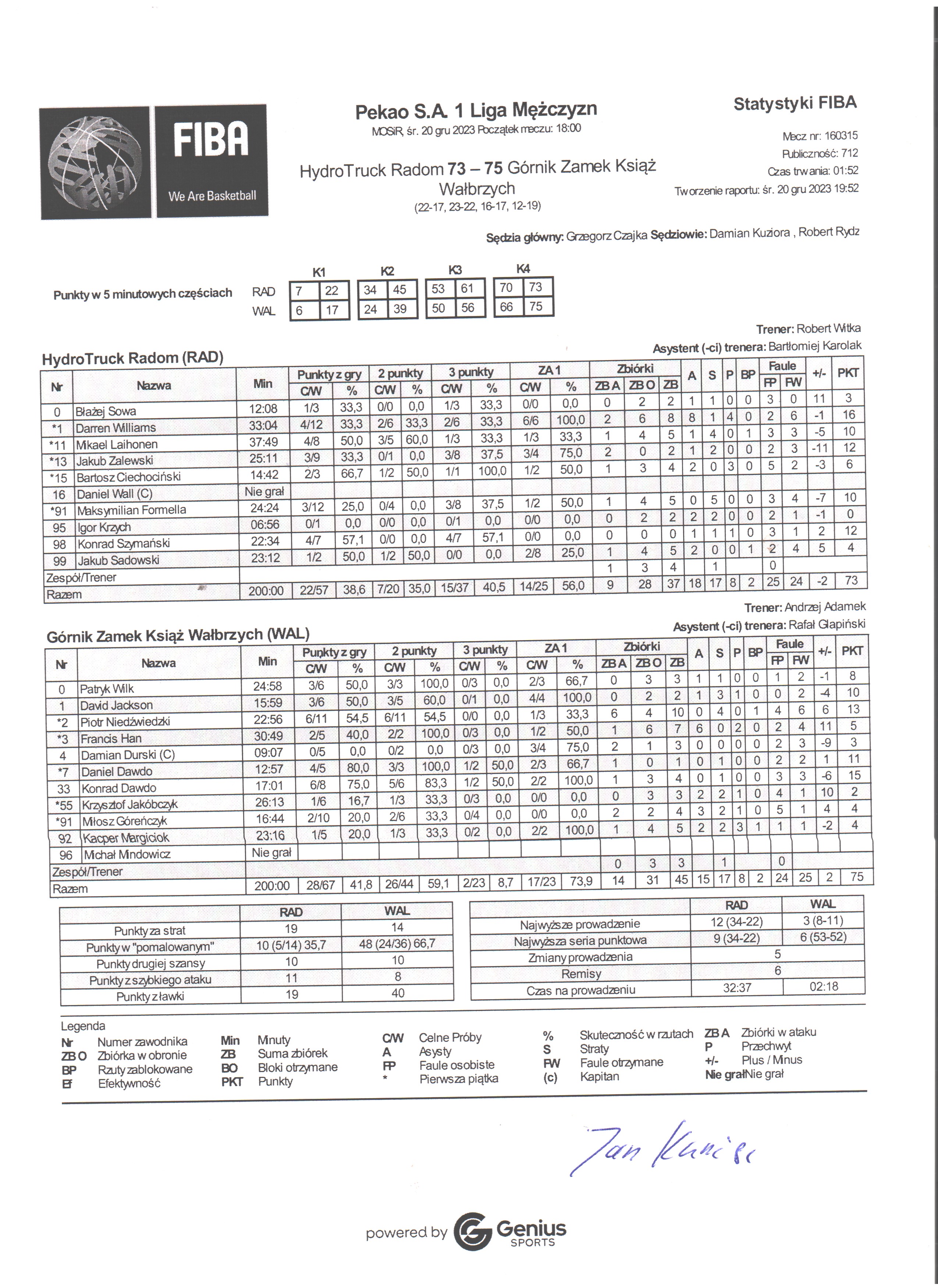 Sędziowie: Grzegorz Czajka, Damian Kuziora, Robert Rydz | Komisarz: Jan Kuniec