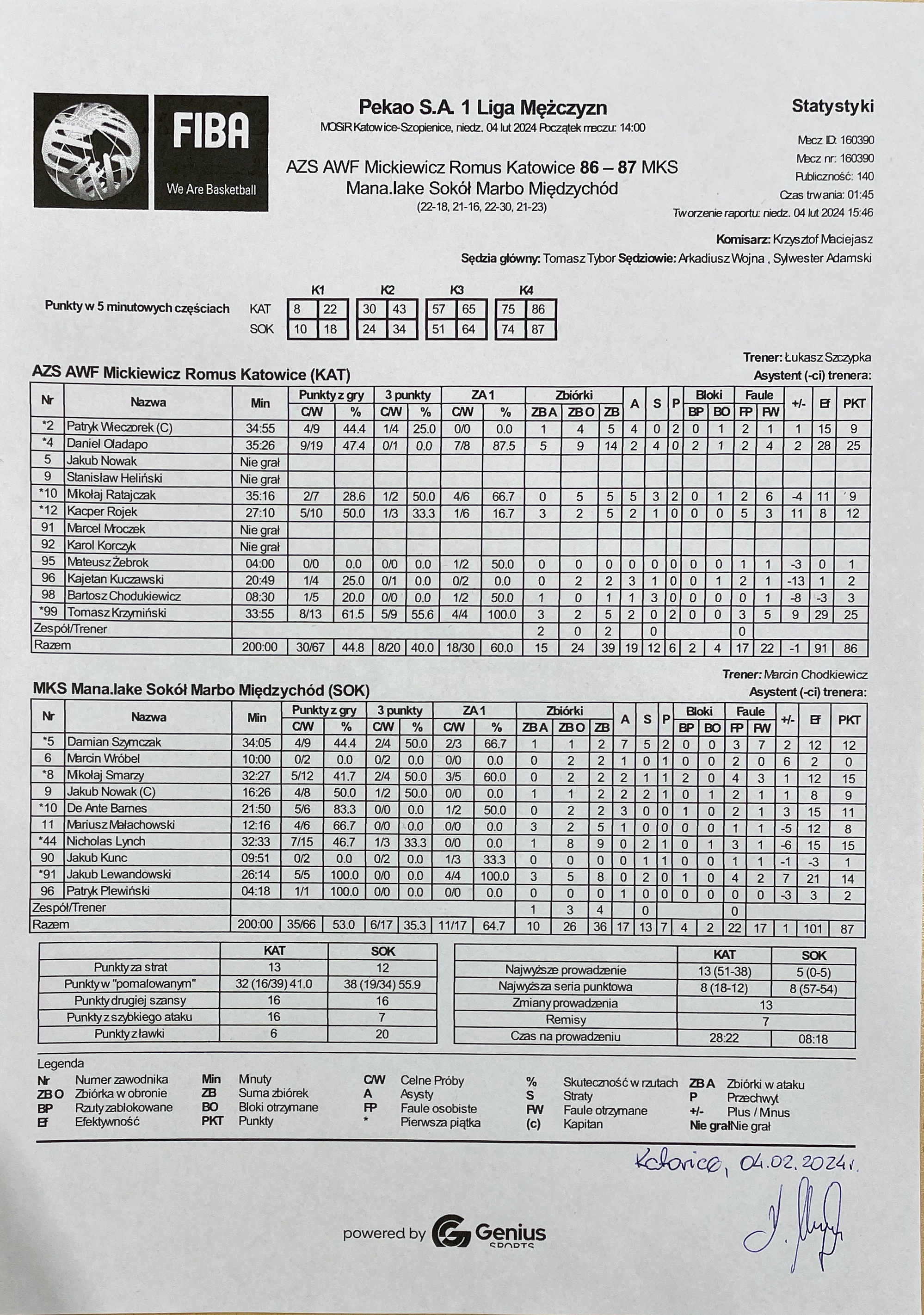 | 10, M. Ratajczak, niecelny z wyskoku za 2 | 05:34:00 | |||