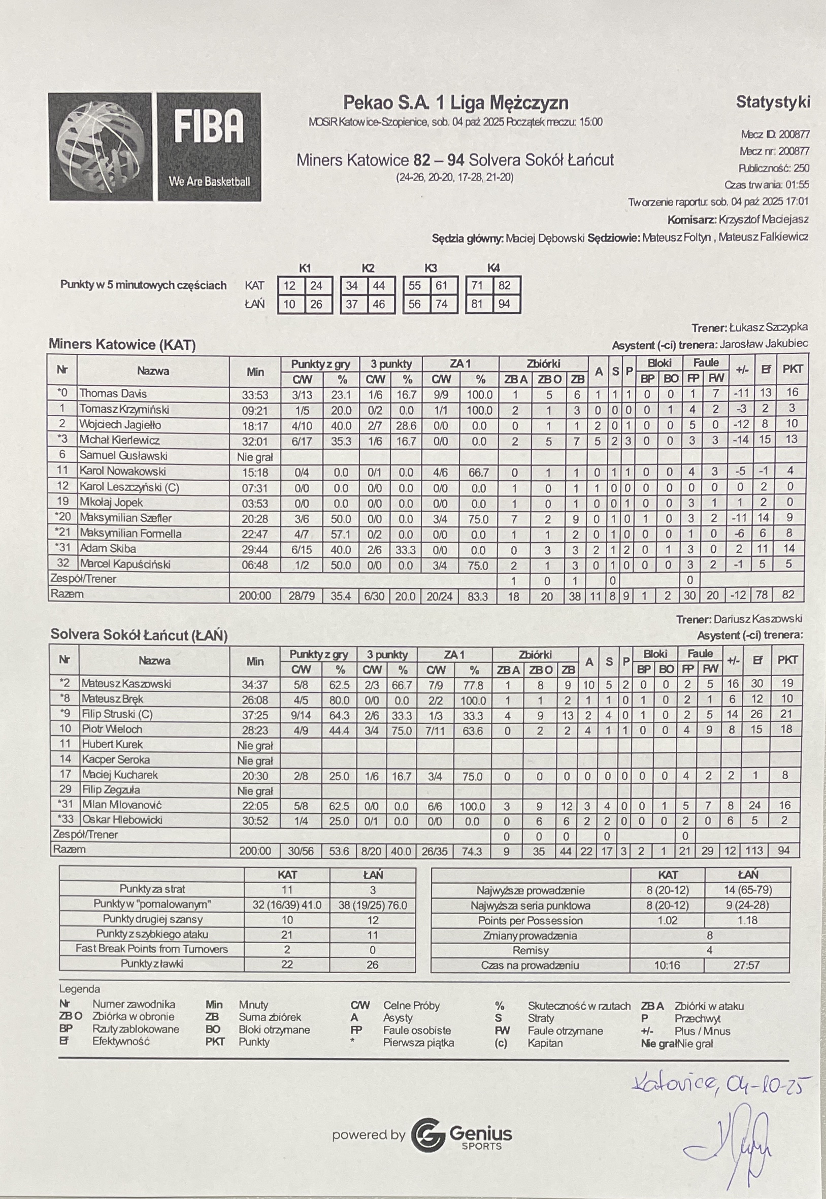 Sędziowie: Maciej Dębowski, Mateusz Foltyn, Mateusz Falkiewicz | Komisarz: Krzysztof Maciejasz