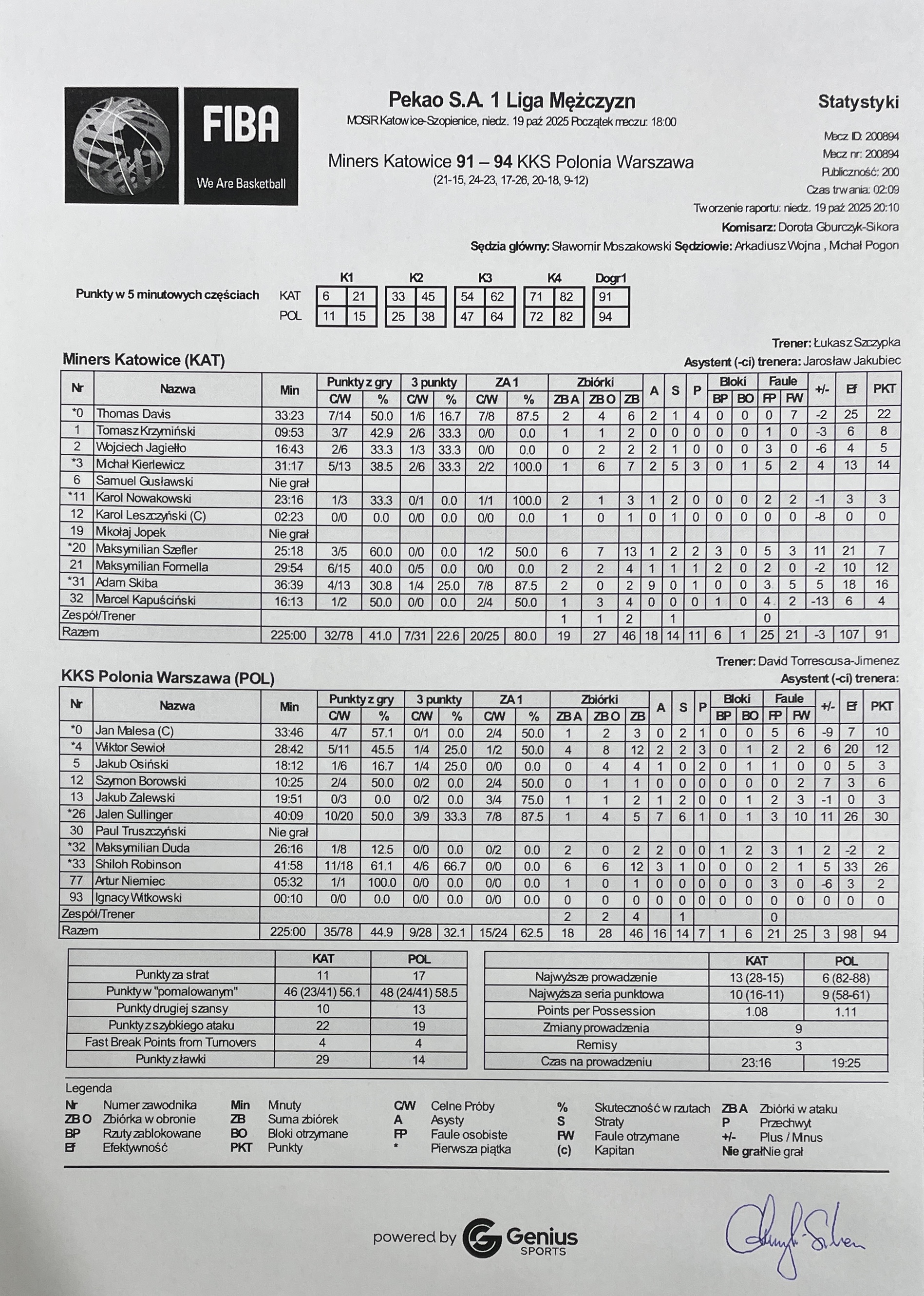 | 0 | Jan Malesa | 10 | 33:46 | 4/6 | 66.7 | 0/1 | 0.0 | 4/7 | 57.1 | 2/4 | 50.0 | 1 | 2 | 3 |   | 5 | 6 | 2 | 1 |   |   | 7 | -9 | |