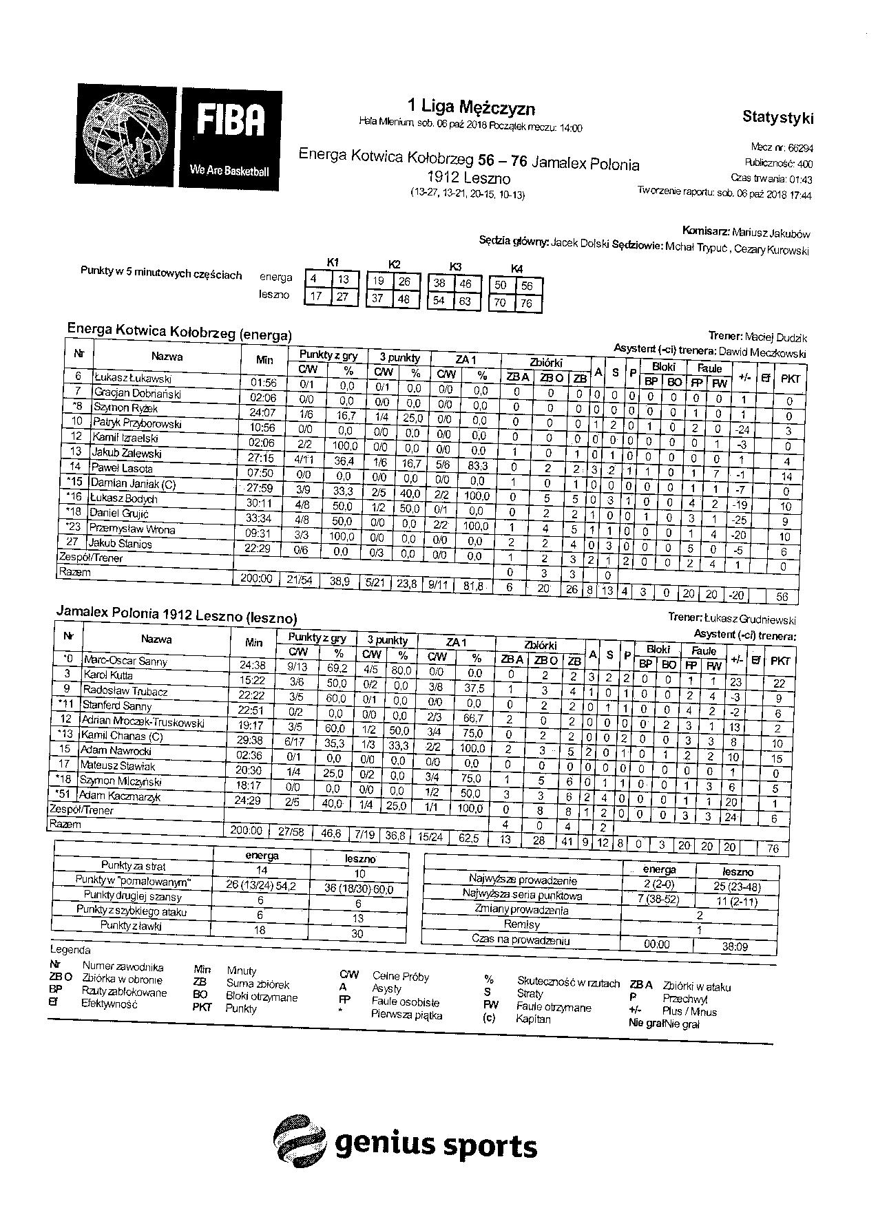| Energa Kotwica Kołobrzeg | Kwarta 1 | Jamalex Polonia 1912 Leszno | ||