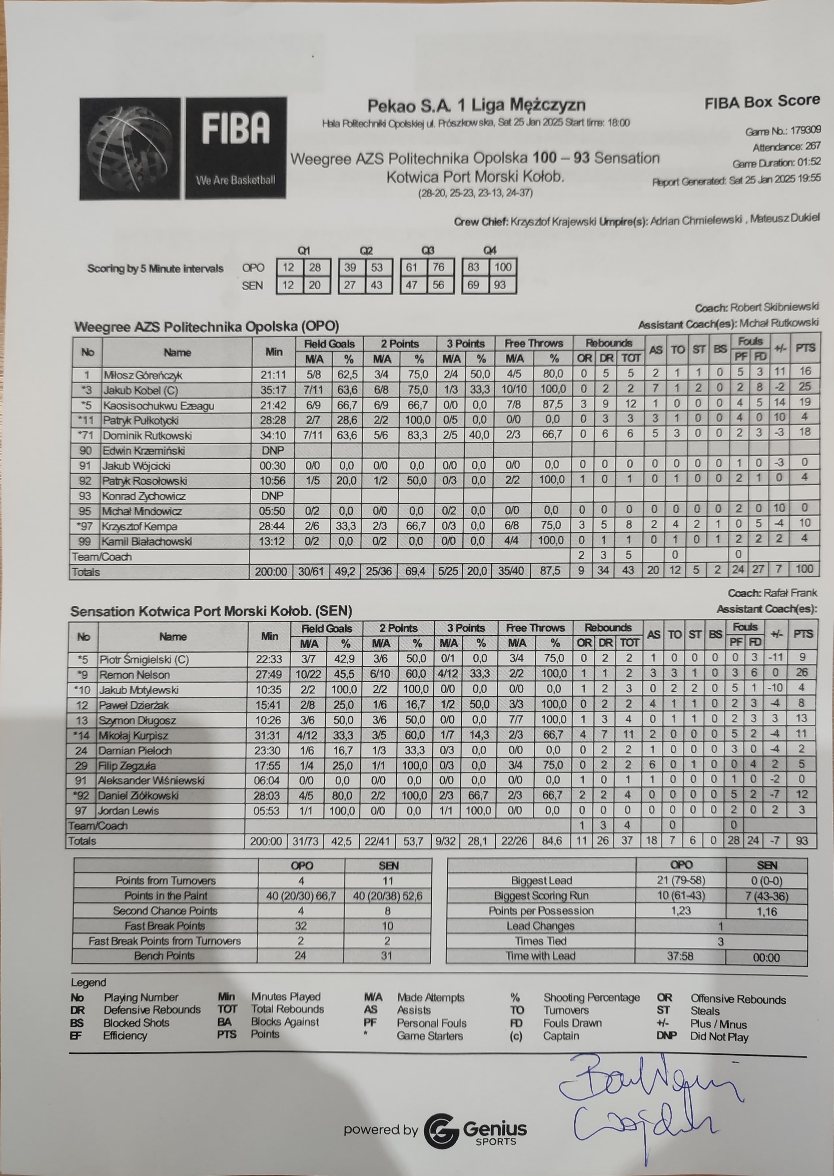 | 24 | Damian Pieloch | 2 | 23:30 | 1/3 | 33.3 | 0/3 | 0.0 | 1/6 | 16.7 |   |   |   | 2 | 2 | 1 | 3 |   |   |   |   |   | 0 | -4 | |