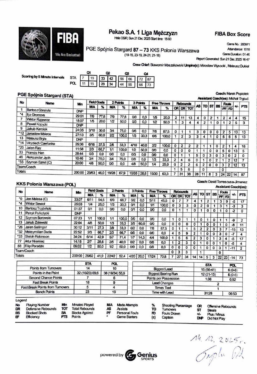 | PGE Spójnia Stargard | KKS Polonia Warszawa | |