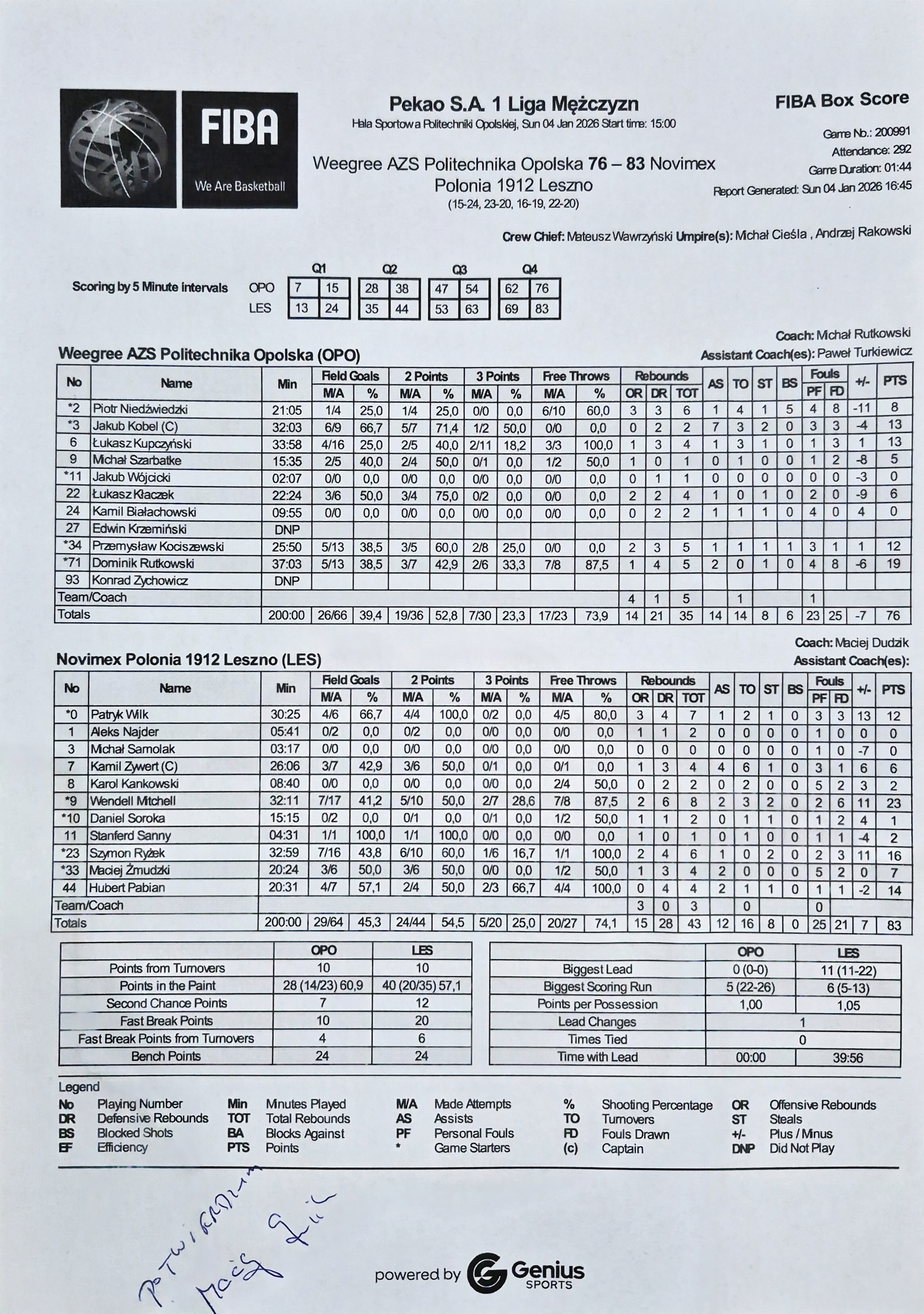Weegree AZS Politechnika Opolska Novimex Polonia 1912 Leszno