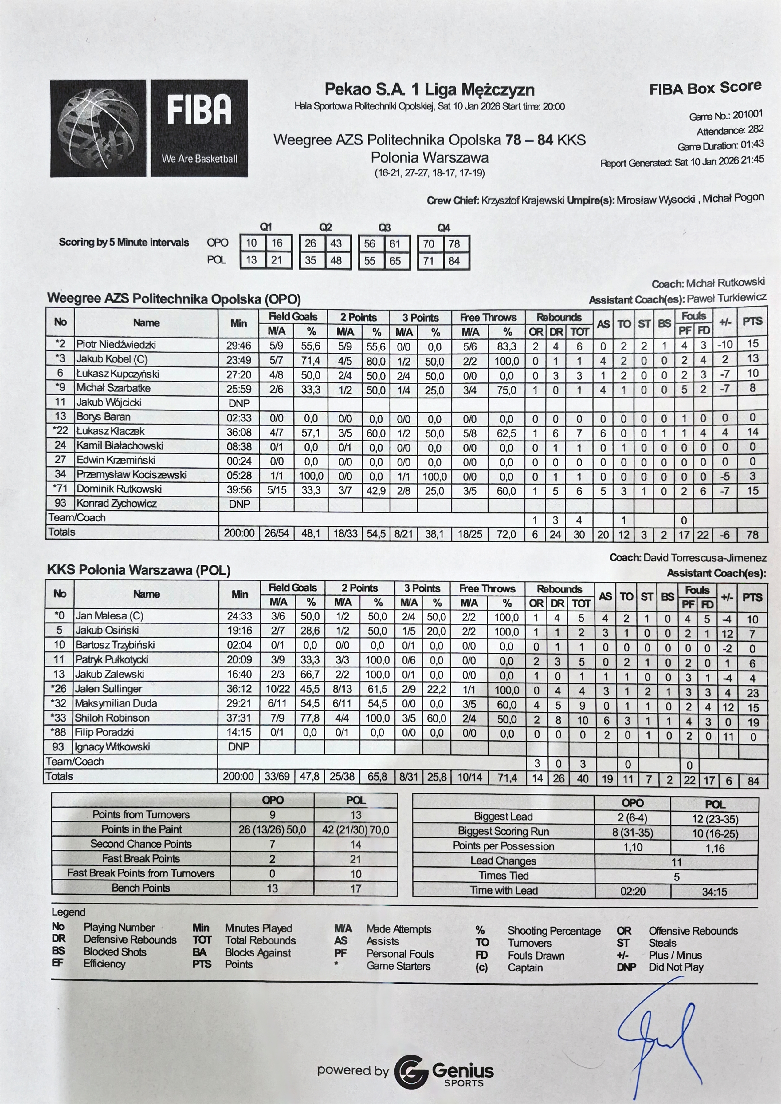 | 2, P. Niedźwiedzki, celny z wyskoku za 2 | 10 | 05:52:00 | 13 | |