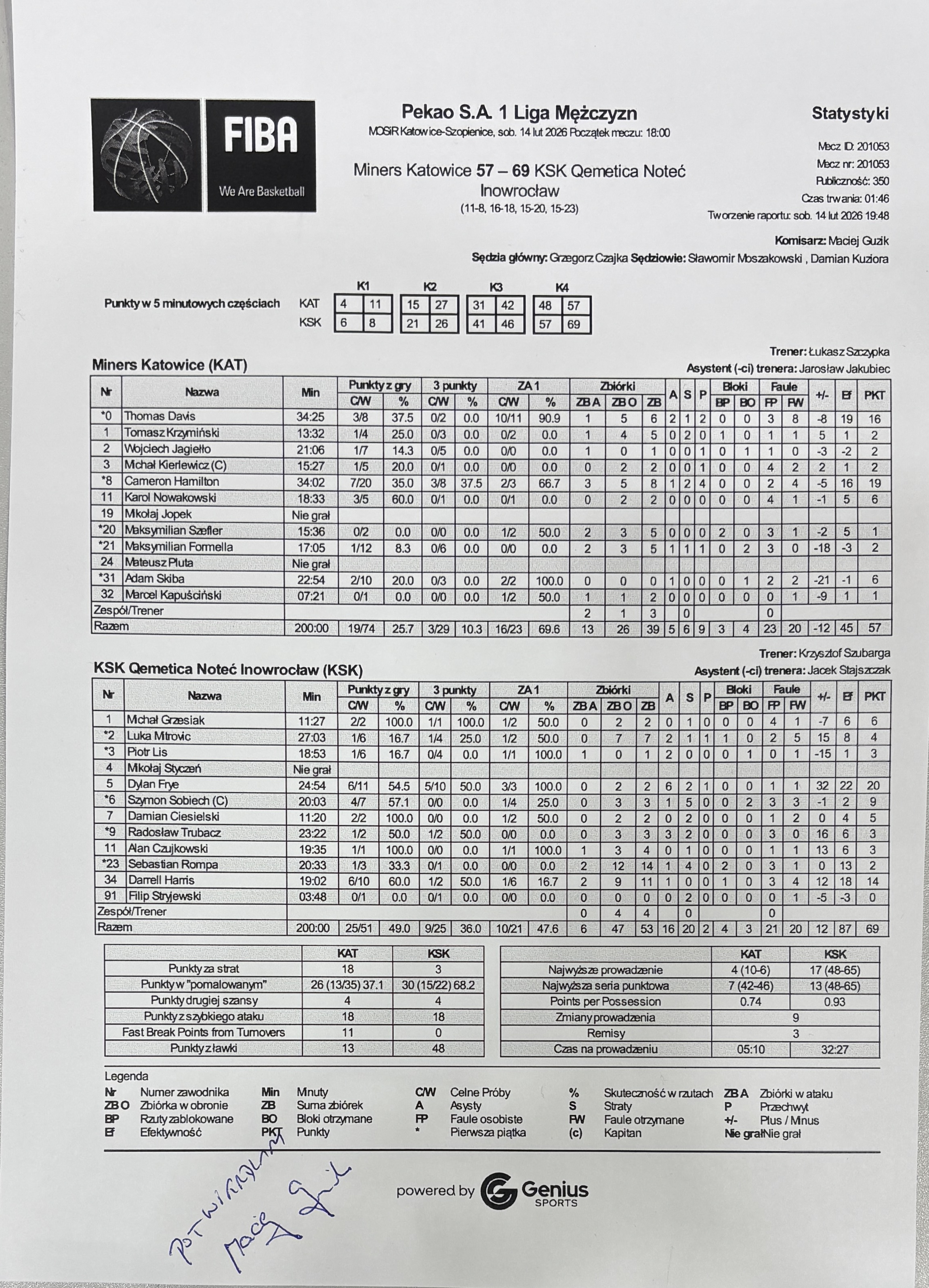 | Miners Katowice | KSK Qemetica Noteć Inowrocław | |