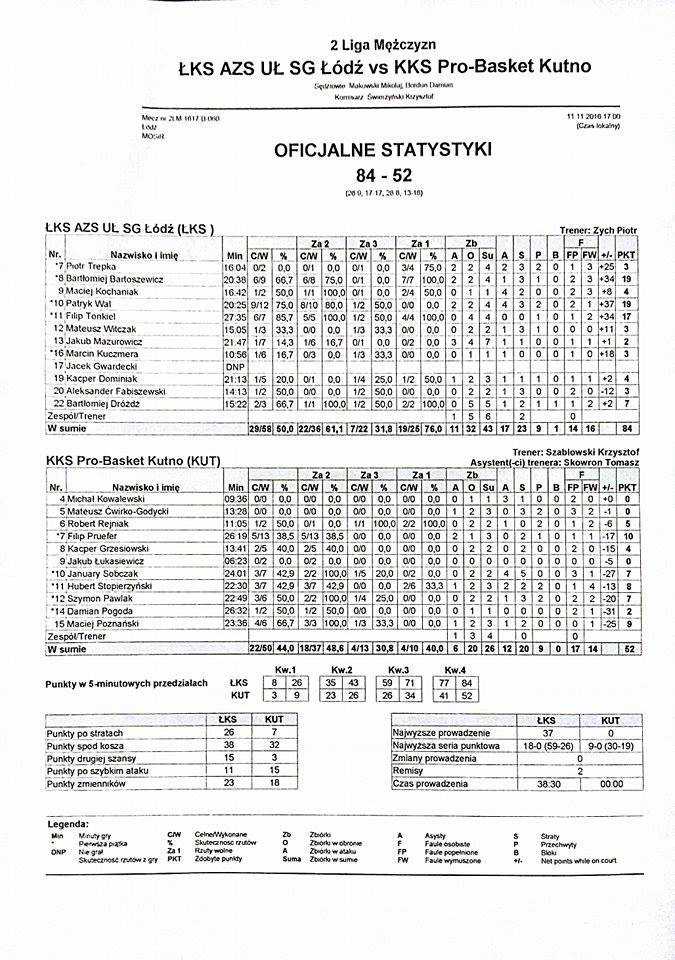 | ŁKS AZS UŁ SG Łódź | Kwarta 2 | KKS Pro-Basket Kutno | ||